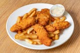 2 chicken fingers with fries (with a sauce of their choice on the side).